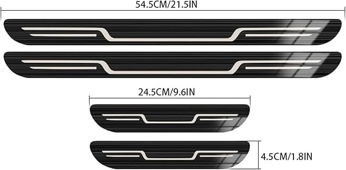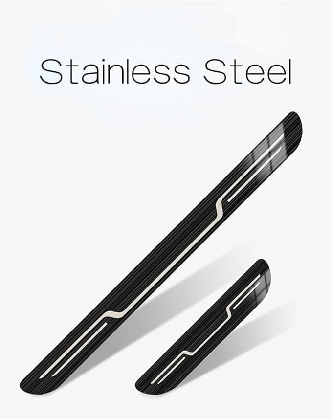 Why do you need it?Are you still worried about outdated door thresholds after your car has been scratched?Doors can deteriorate due to exposure. Door sills can also wear out, scratch or even be kicked when getting in and out of your car.You need complete sill pedal protection for your car. Special door sills can improve the appearance of your car.Specifications:1.100% brand new and high quality2.3M self-adhesive attached, easy to install, no tools required3.Package: 4 Pcs Car door sill=2 for front door,21.5*1.8in. 2 for back door,9.6*1.8in.NOTE:1. Before installation, compare the protector with the door to ensure it matches and is compatible with your car.2. Clean any dirt from the door steps with a damp cloth and wipe dry.3. After comparing the installation position, peel off the 3M tape and stick it on.4. Try to install in sunny and rain-free weather. Do not wash the door step with water for two days after installation as it will be more durable.Our service:If you have any questions after purchase, please contact us within 24 hours and we will get back to you as soon as possible.If you are satisfied with our products, please leave your comment below in the store for other buyers to refer to.Thank you.