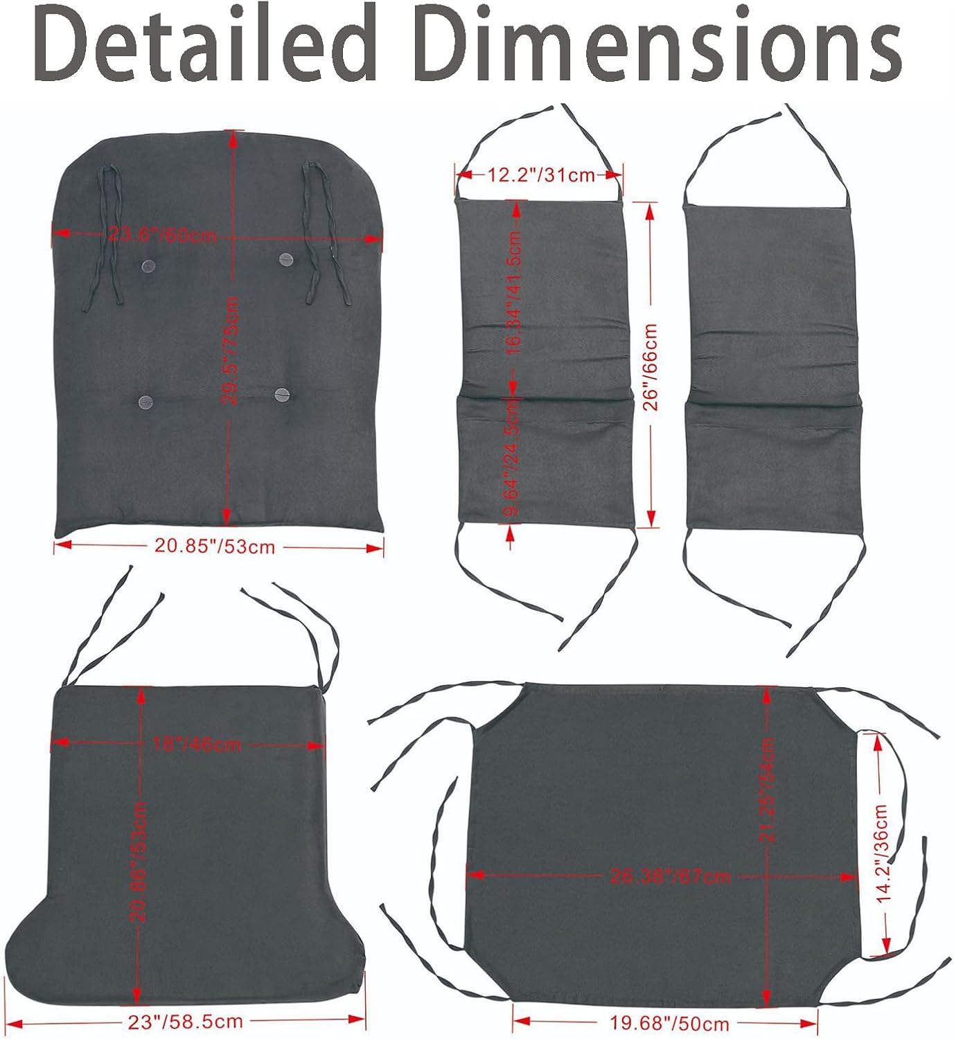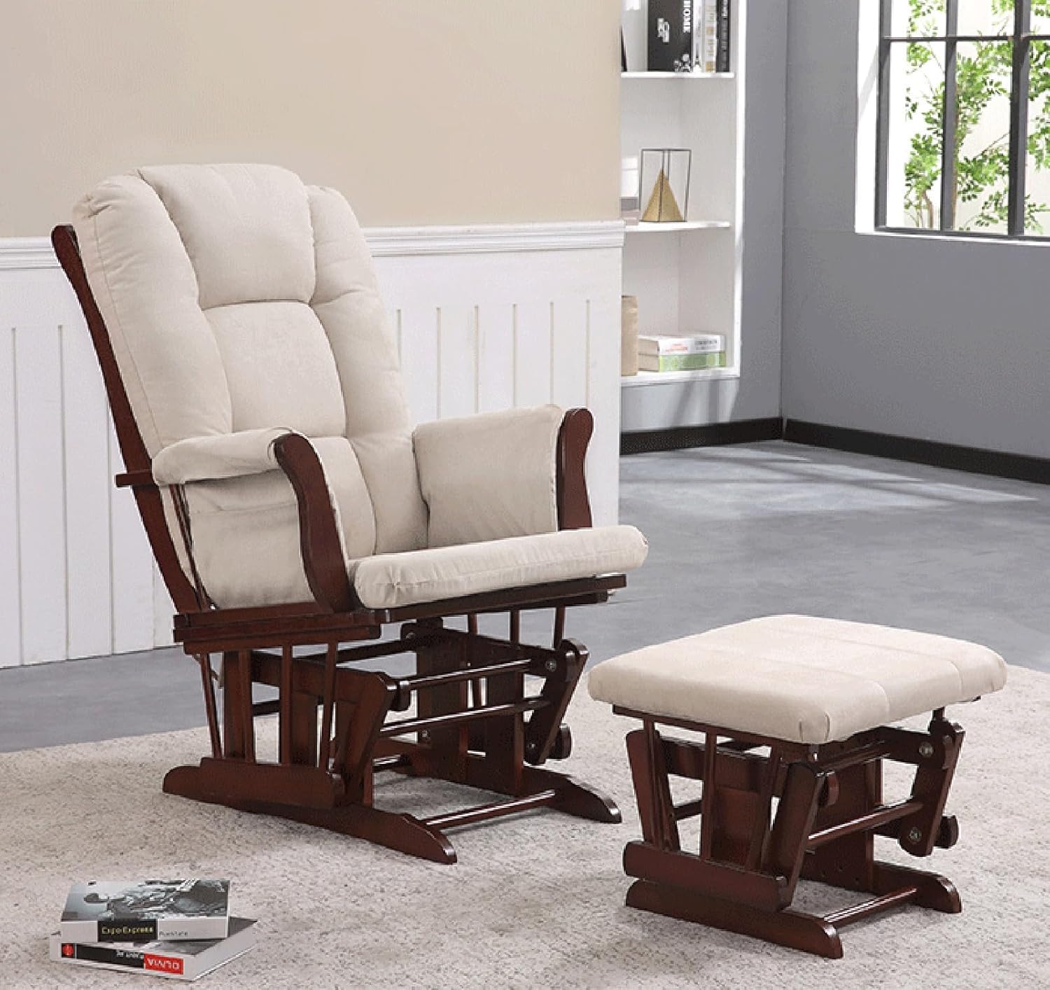 Specification:Type: Glider & Ottoman Cushion SetMaterial: Velvet + PP Cotton + SpongeSize:Backrest Cushion: 23.6'L X 29.5''WSeat Cushion: 26''L X 21''WOttoman Cushion: 20.4''L X 15.7''WSide Pocket Cushion: 26"L X 12.2"WSuitable For: Chair, Glider, Swing Chair, Rocker Chair (Please Check The Size Information Before Purchasing)Note: No Gliding Chair IncludedPackage Included:1 X Backrest Cushion1 X Seat Cushion1 X Ottoman Cushion2 X Side Pocket Cushions