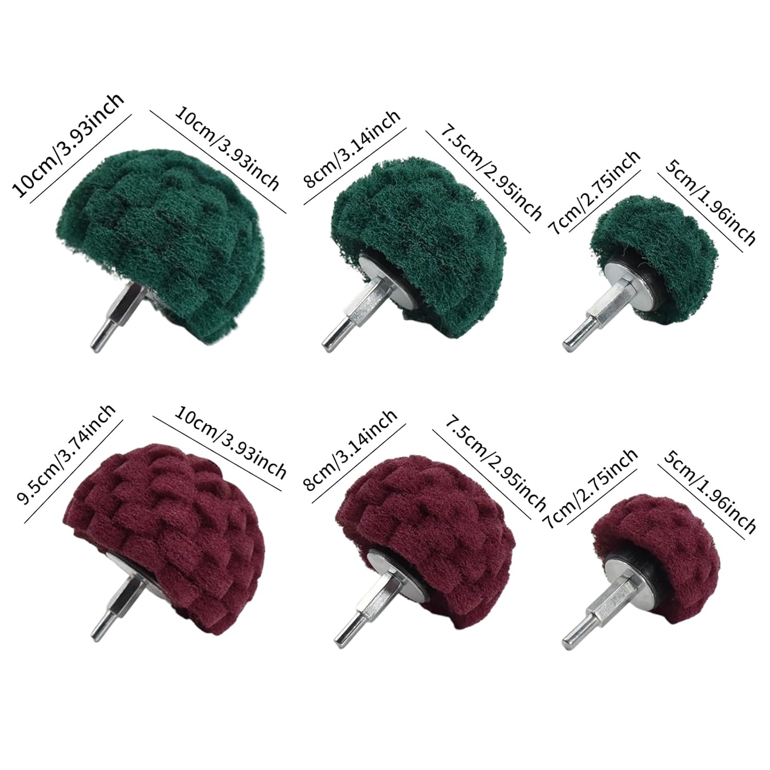 Color: Red,Green Abrasive polishing pads 1/4 Green: #180 Abrasive polishing pads 1/4 Red: #400 This kit includes: 6 x Mushroom Shaped non-woven abrasive drill attachments