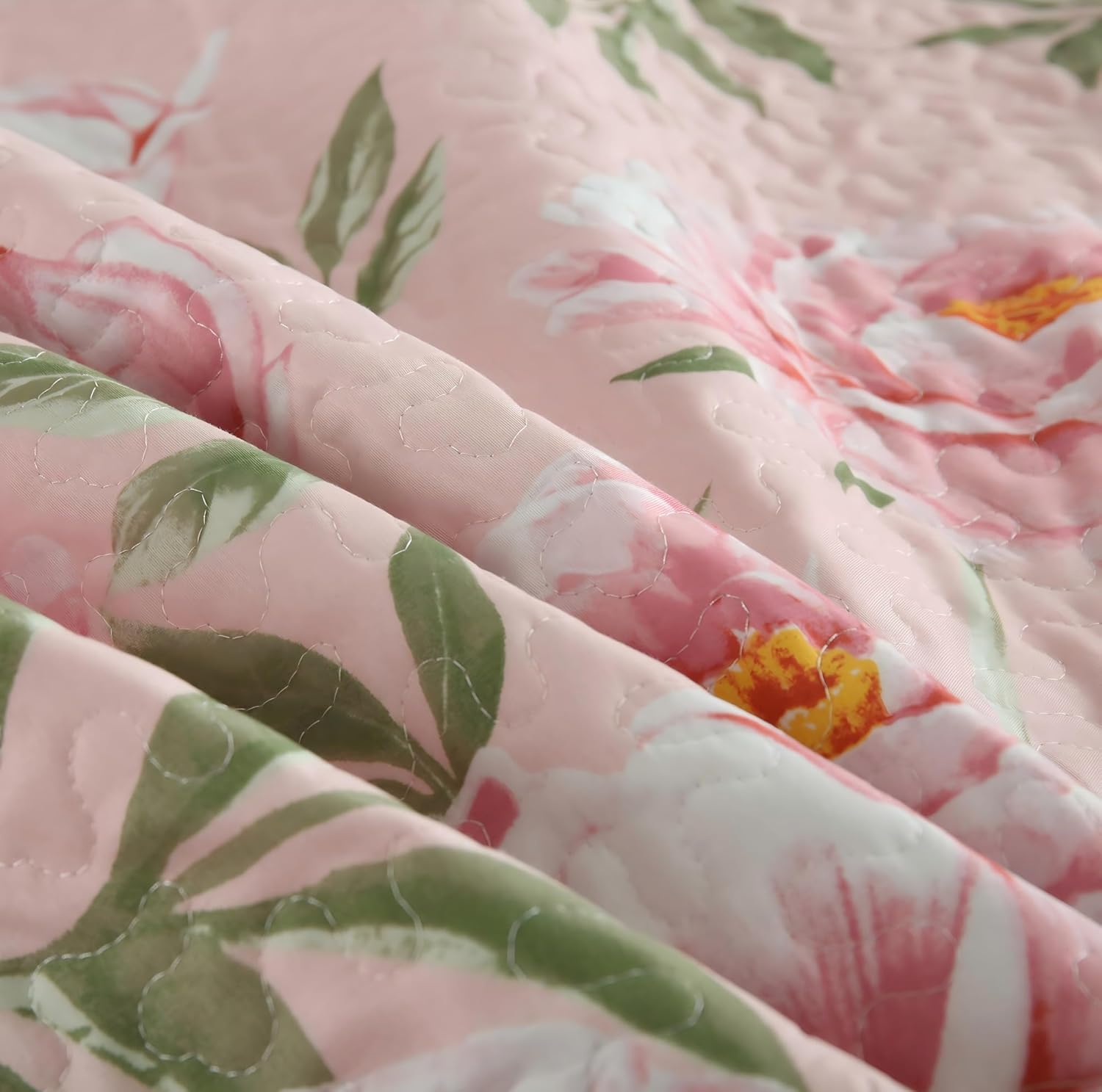 Boryard Queen Size Quilt Set, 3-Piece Lightweight Soft Full Size Spring Quilt Reversible Bedspread Coverlet (90x90 inches) Bedding Set with 2 Pillow Shams, Pink Peony Flower Print