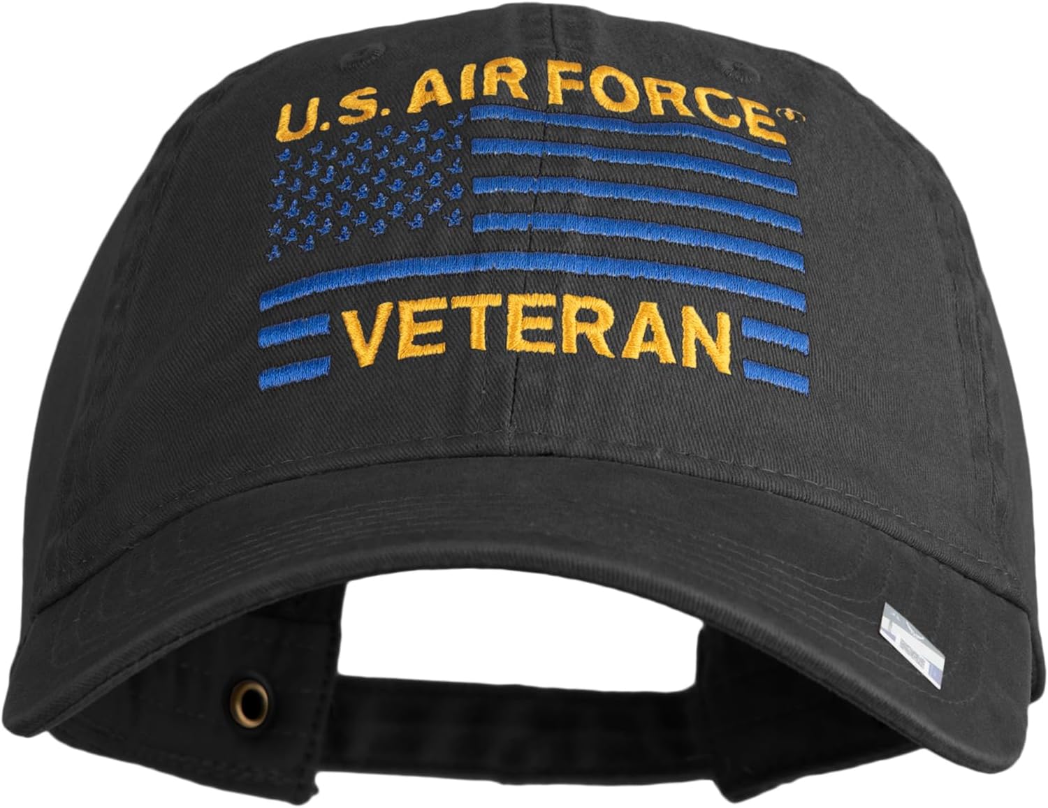Title, US Air Force Veteran Flag Embroidered Cotton Twill CapDesign Theme, US Air Force Veteran and flag embroidery for a patriotic tributePerfect For, Ideal for air shows, parades, and patriotic holidaysSize Fit, One size fits most with adjustable buckle strap, fits up to XLCrown Depth, Crown measures 3 1/2 inches deepCap Style, Low profile 6 panel cap with unstructured crownMaterial, Made of 100% cottonBill Design, Pre-curved bill measures 3 inches longColor Consistency, Front and bottom bill colors are the sameVentilation, Features 6 small ventilation holes on each panelDimensions, Measures 7 1/2(W) X 11(L) X 4 1/2(H) inchesMaterial Quality, Thick, soft, and lightweight fabricTarget Audience, Suitable for adults and unisex useSeason Suitability, Designed for all-season wearCare Instructions, Hand wash onlyOrigin, Imported product