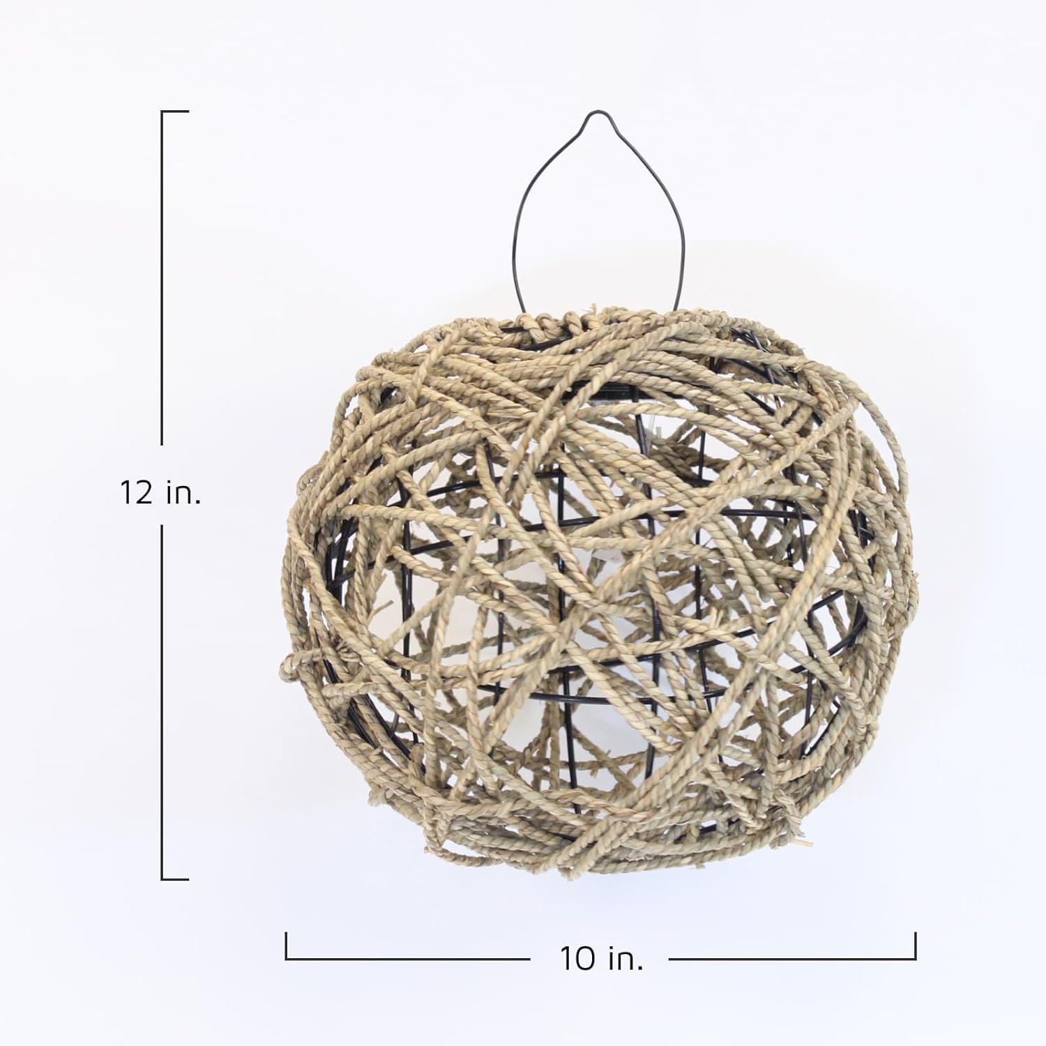 Originating from the early 20th century, sea grass has served multiple uses; today, our Sea grass Lantern is a stylishly repurposed solar lantern for the modern day home's landscape lighting. The dried sea grass is weaved around a round iron mold, then fumigated and sun dried to ensure its weather-resistance. Located at the top of the garden light is a hanging single-cell solar panel (battery included) that absorbs sunlight by day and automatically turns on the white LED at night. The nighttime spectacle is otherworldly as the light passes through the interlaced openings. Can be used indoors or out.