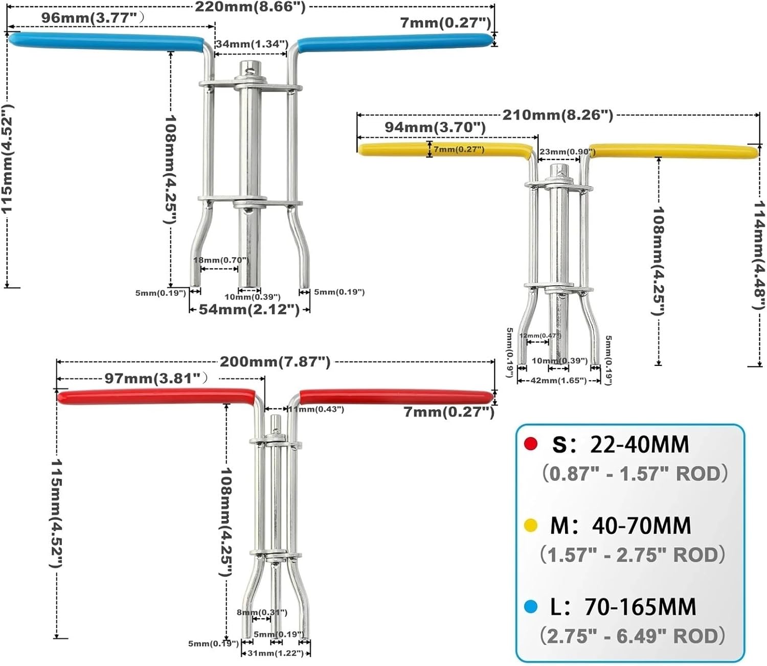 3Pcs Hydraulic Piston Rod Seal Installation Tool for U-Cup Seal Installer Tool Kit Seal Repair ToolsProduct Description:Material: Stainless SteelThree colors: red, yellow and blueRed size: 22-40MM (0.87"-1.57"ROD)Yellow size: 40-70MM (1.57"-2.75"ROD)Blue size: 70-165MM(2.75"-6.49"ROD)Package includes:3* Seal Installation Tools