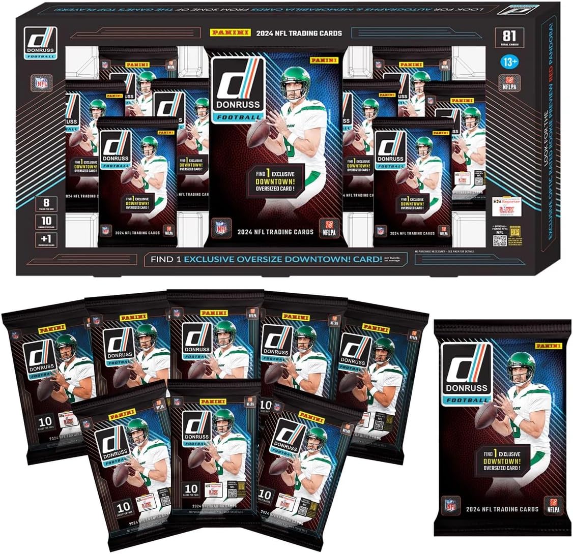Features: (8) Panini 2024 Donruss NFL Trading Card packs (1) Downtown! Oversized Card Cards Vary by Pack Recommended Age: 13+ Years Look for the exclusive Red Pandora and Football Emoji parallels Find some of the NFLs most popular stars Throwback to the iconic 1993 and 2003 Donruss designs with a chance to find special inserts Key Rookies Caleb Williams Drake Maye Jayden Daniels J.J, McCarthy Bo Nix Marvin Harrison JR. Malik Nabers Brock Bowers