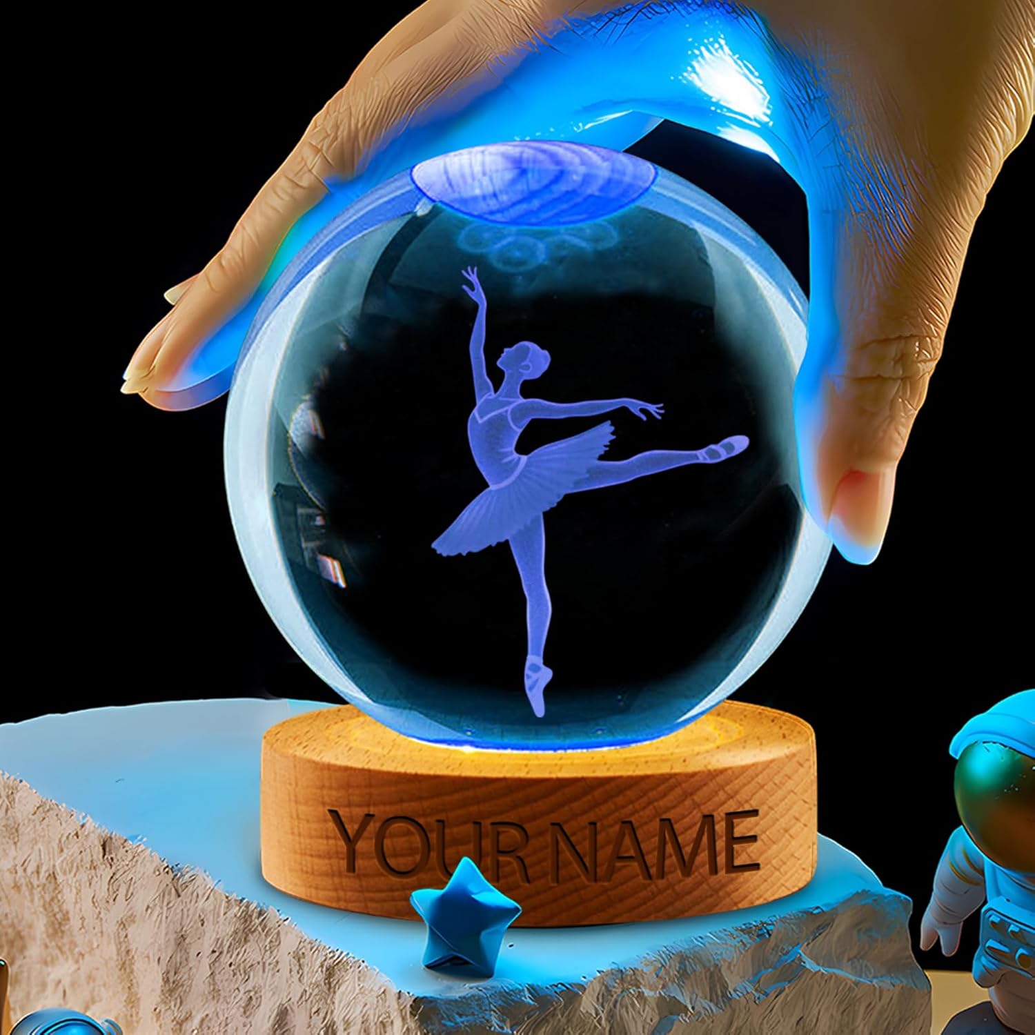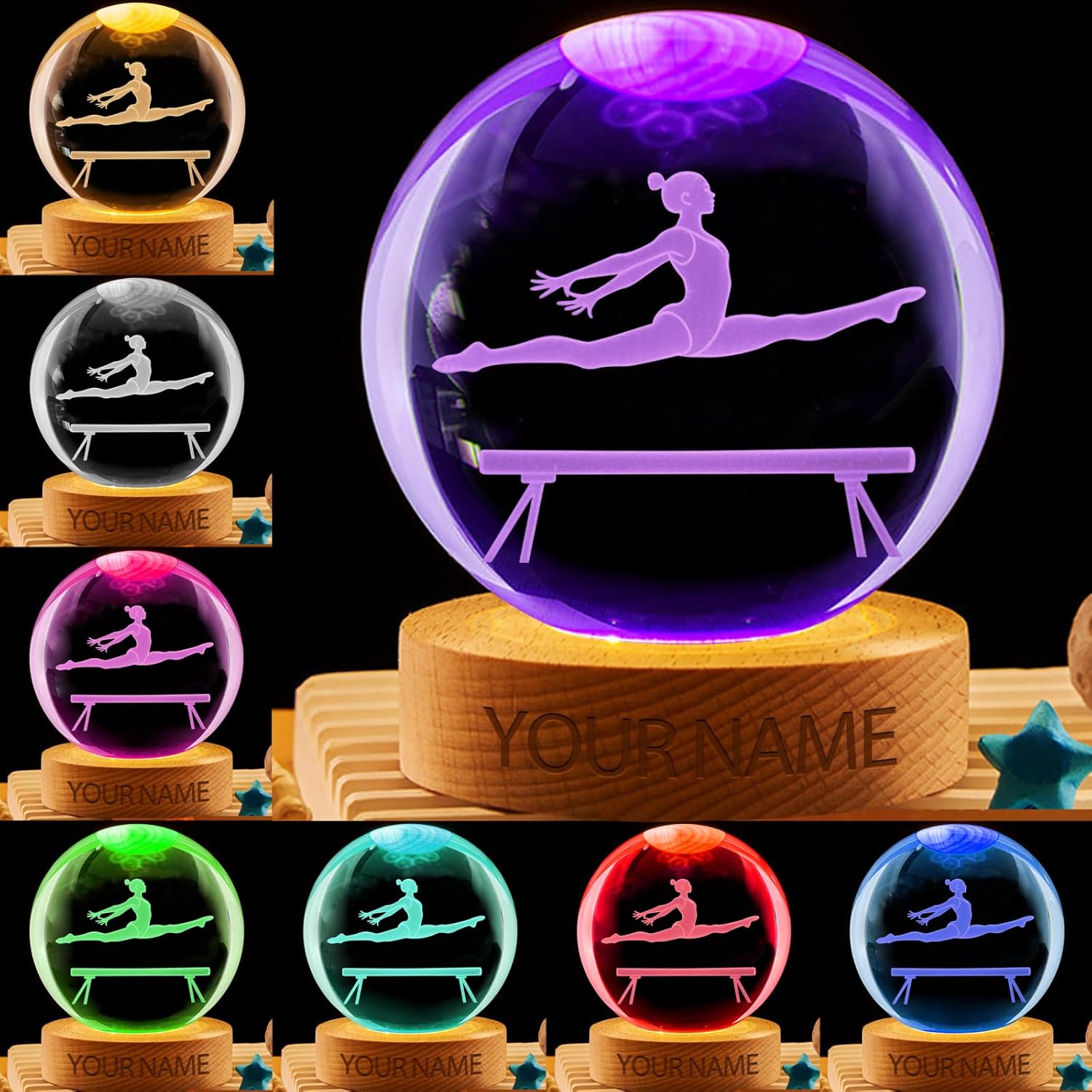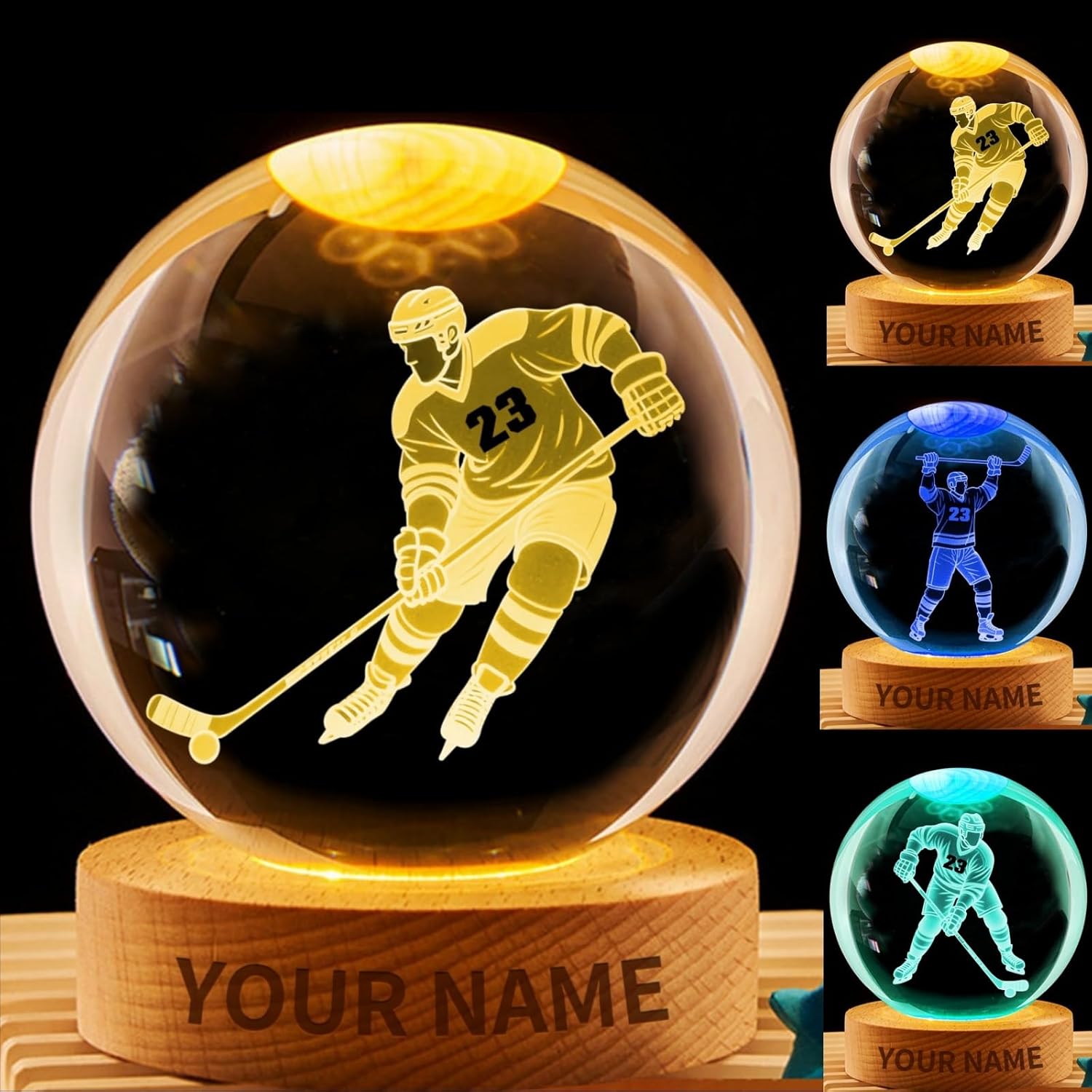 This multifunctional crystal ball night light is designed to bring joy to sports fans, dancers, and players, enhancing your space and gift-giving experience! As a personalized crystal lamp, it allows you to add custom names and numbers, making it a unique, personalized gift. It serves as a statement reflecting the passion and spirit of sports players. Whether you're shopping for hockey gifts, football gifts, baseball gifts, or cheerleading party gifts, this versatile night light is perfect for you. Crafted from durable crystal, this crystal ball lamp combines aesthetic appeal with practical functionality. Available in two crystal ball sizes—6cm/2.4 inches and 8cm/3.1 inches—this LED night light comes with a single-color yellow base or 7-color light base to suit any mood or occasion. Its soft, warm glow makes it the perfect nightlight for bedrooms while also functioning as a fully-featured table lamp, an ideal addition to any bedroom or gathering space. More than just a nightlight, it's a versatile decorative piece that adds ambiance to any living room, bedroom, birthday party, or Christmas party. This unique crystal ball nightlight seamlessly blends elegance with personalization, embodying style and individuality. Order now to surprise your loved ones!