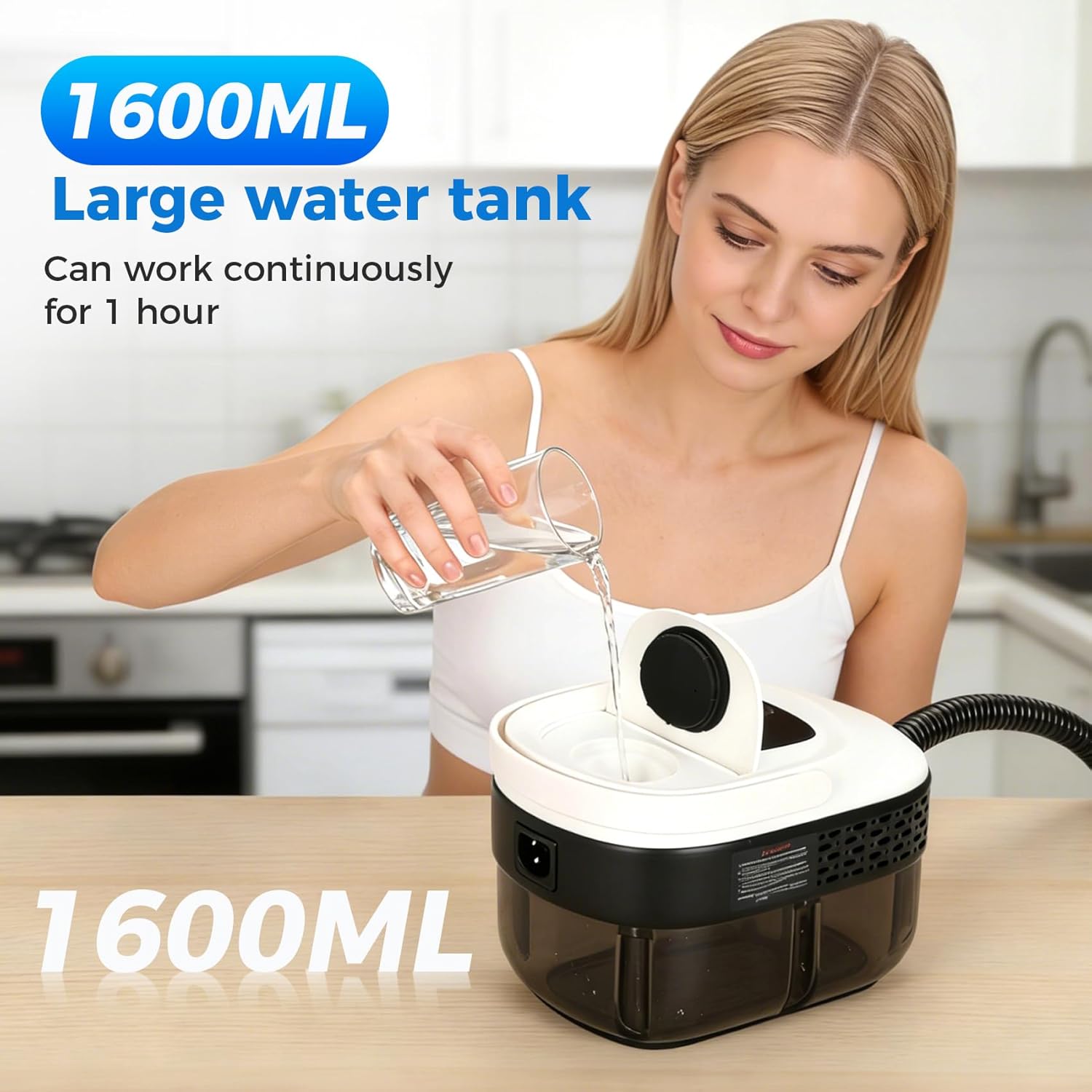 Our Multipurpose Canister Steam Cleaner is a 17-in-1 all-in-one tool for home and car, featuring 3-level adjustable steam (controlled via the handle), 15-second rapid heat-up to 221°F (105°C), and a 1.6L ABS water tank that provides up to 48 minutes of continuous steam for whole-home or full-car deep cleaning without frequent refills; it comes with full attachments (mop head, nozzles, scrapers, brushes, extension wand, etc.) to reach every corner, plus a 10ft power cord, 5ft steam hose and 3.6ft extension wand for easy access, a compact design for convenient storage, and a 1-year warranty—contact us directly for any issues, and we’ll provide a satisfactory solution within 12 hours, all without harsh chemicals needed.