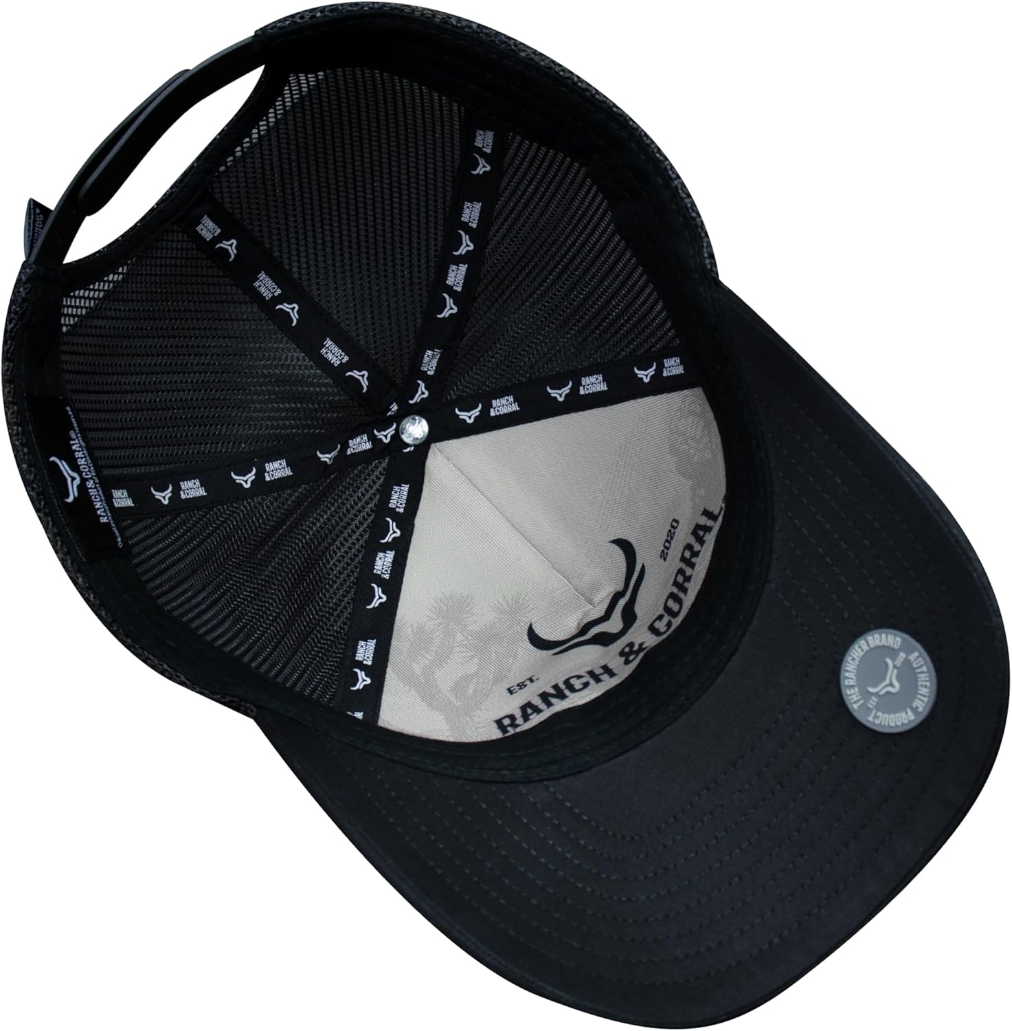 Look in style with this black cap from Ranch & Corral, designed for the true heavy duty enthusiast. It features a distinctive embroidered patch with a stunning image of heavy machinery on a yellow background, surrounded by a vibrant orange border and the motto 'Hard Work Rewards'. The cap combines a structured front panel with a practical back mesh that offers excellent ventilation. Snapback fit allows you to customize the measurement for a comfortable fit. Made with durable materials, this cap is perfect for everyday work or casual wear. The design includes the Ranch & Corral logo embossed on the visor, adding an extra touch of authenticity. Its versatile black color and eye-catching patch design make it an accessory that stands out both on the job site and in your everyday activities.
