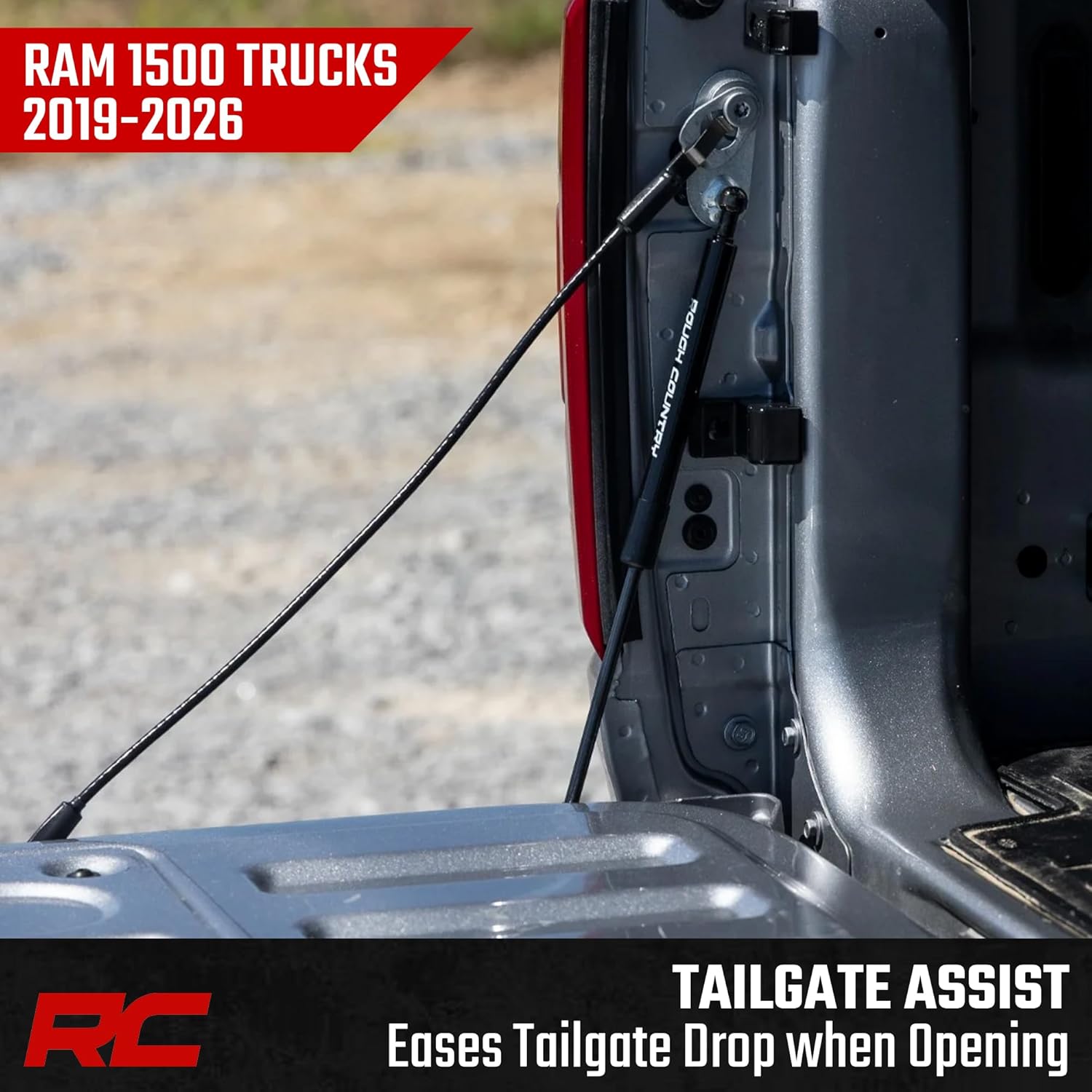 The Assistance You Need. Want a hassle-free way of lowering your tailgate? Look no further than Rough Country's Ram 1500 Tailgate Assist! Simply grab and pull the handle, and your gate will ease down, making accessing the back of your truck effortless. With this smooth device, you'll never have to worry about your truck's tailgate slamming down suddenly. Plus, it provides a safe way to lower your tailgate without straining or using two hands. With Rough Country's revolutionary technology, you can make operating your tailgate as smooth as can be.Installation and Warranty. This easy-to-install tailgate assistant works with your factory cables to provide effortless, safe opening and closing - giving you a smooth ride every time. With only one tailgate assist required per truck, you can hit the road and move on in no time. Our Tailgate Assist fits directly onto your driver side without having to drill any holes, and all the hardware you need to install is included in the package. Custom Designed specifically for the Ram 1500, Rough Country's Tailgate Assist is back with a three-year warranty! Fitment Notes: Does NOT fit models equipped with multifunction tailgate. Installs on driver side only.
