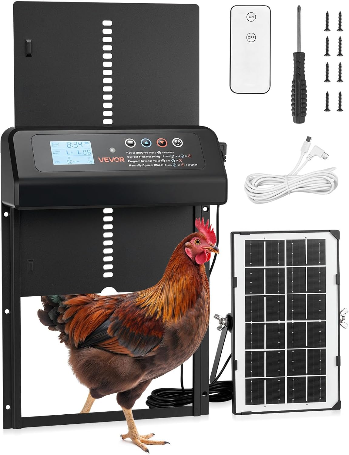 | Item Type Name | Battery Powered Chicken Coop Door with Timer & Manual Setting, Anti-Pinch Security, Durable Aluminum Alloy, Auto Chick Run Gate Opener with Waterproof Sealing, Black |