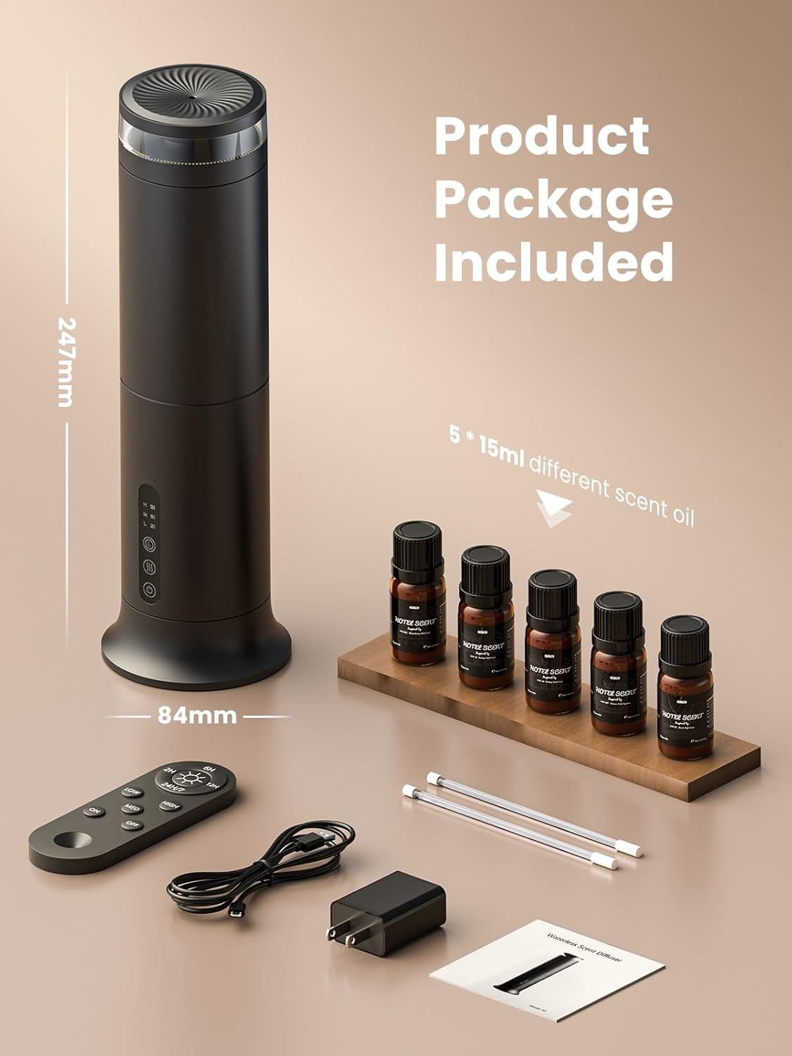 | Included Components | 5 hotel scent inspired essential oils, adapter, user manual, waterless diffuser |