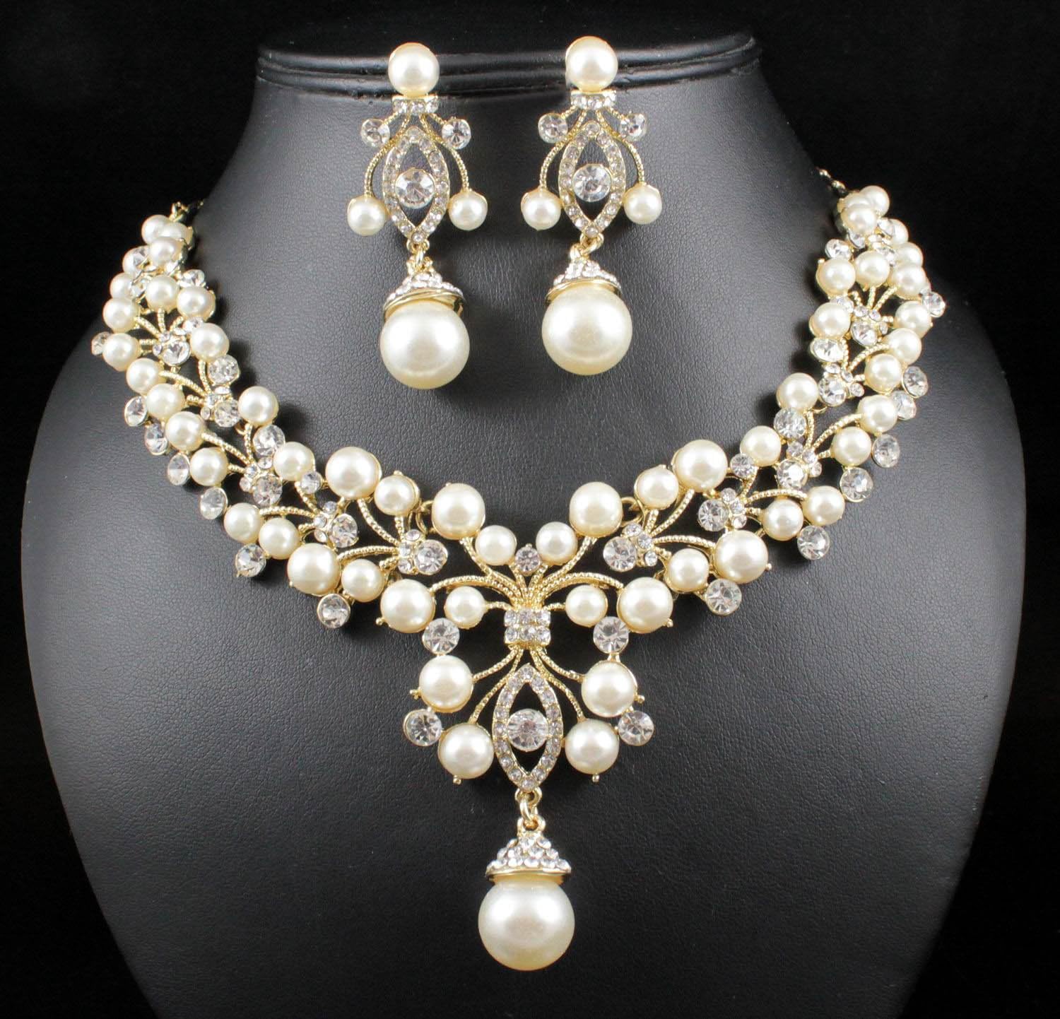 You are looking at sexy faux pearl necklace set. Sparkling first class Genuine Austrian Rhinestones and faux Pearls are set on beautiful shiny metal. This set shines a lot! It is perfect for any special occasions. Thanks for looking!