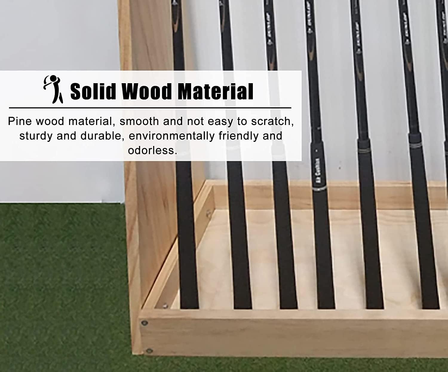 Specification:- Material: Natural Wood- Color: Natural color- Overall Dimensions (Width x Depth x Height): 80x30x80 cm / 31x12x31 inch- Number of Holes: 13- Hole Diameter: 1.38 inch / 3.5 cmPackageincluded:- 1 x Golf Club Holder